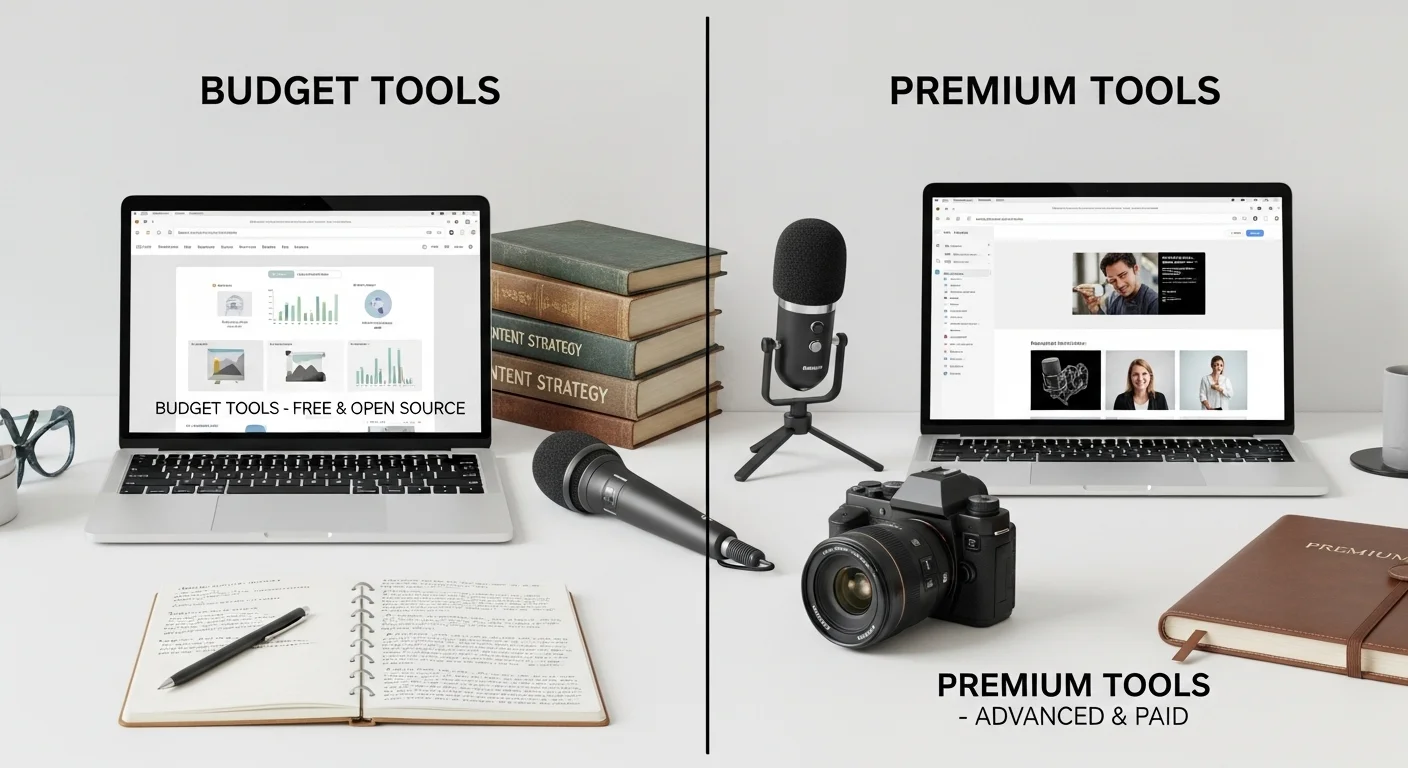 Budget Tools vs Premium Tools, It is a discussion that occurs in nearly all creative studios, start-up offices and even home offices of freelancers. One of us picks up some free or low priced substitute to some high priced software and asks, Why are we paying that much when this will do the same thing? It’s a fair question. And, truthfully, the question is rarely as straightforward as that premium is better and free instruments are as good.